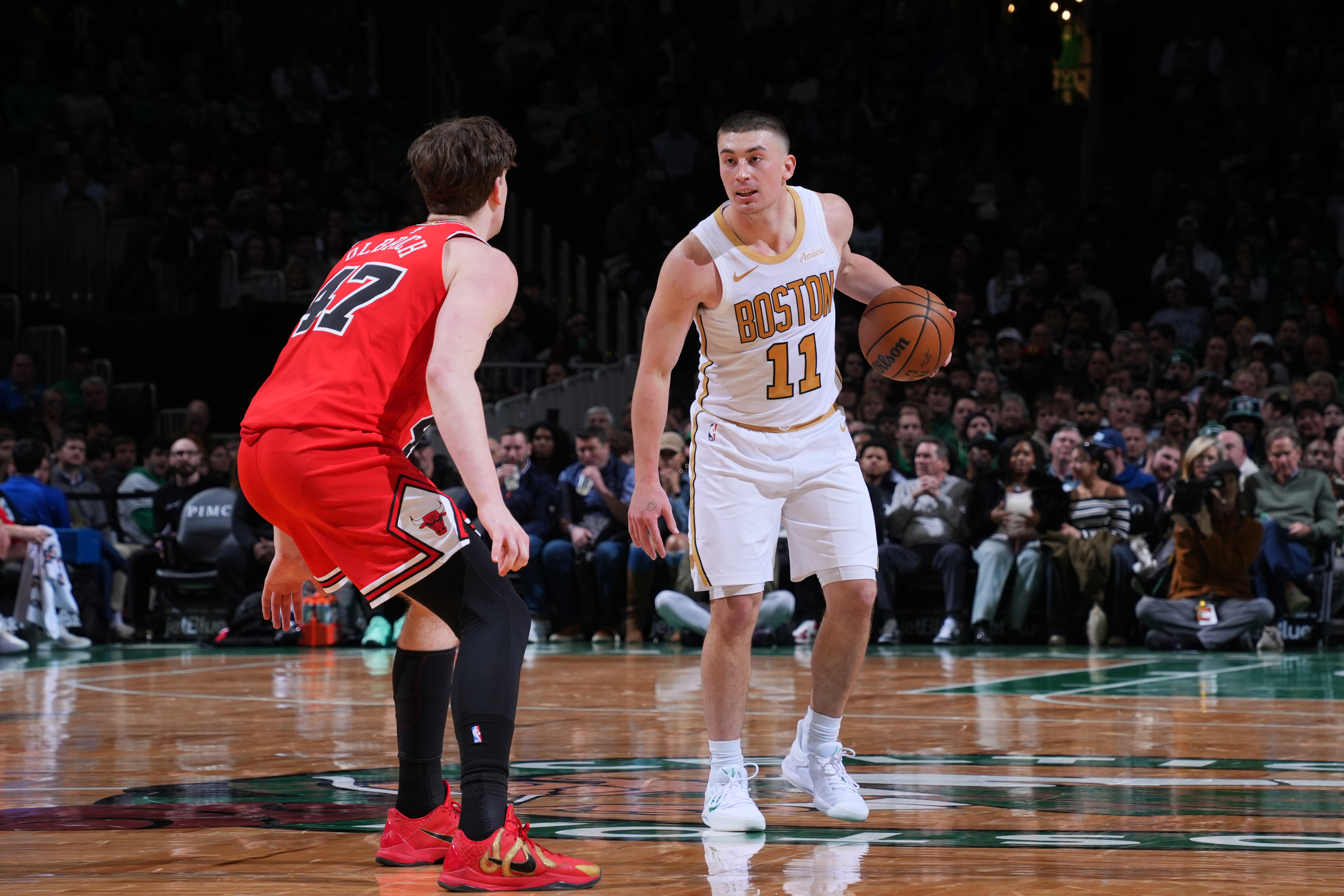 Boston opened the floodgates in the opening period, outscoring the Bulls 31–14 behind a balanced offensive attack.