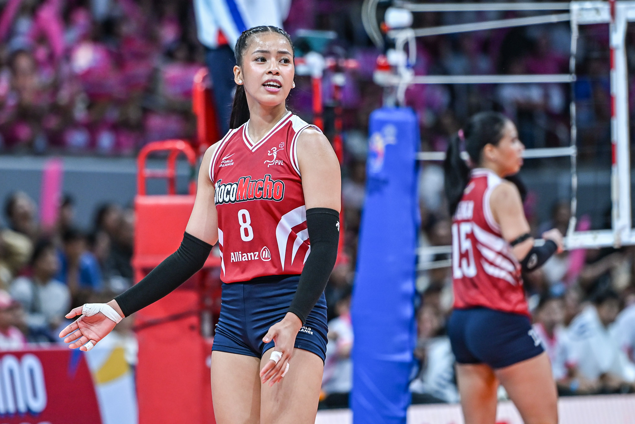 “She’s really had issues with her groin even before, and she also had a strain in her abs. I think it just got aggravated earlier. She’ll have a checkup tomorrow, and hopefully she can come back for the next game,” Rondina said in Filipino.
